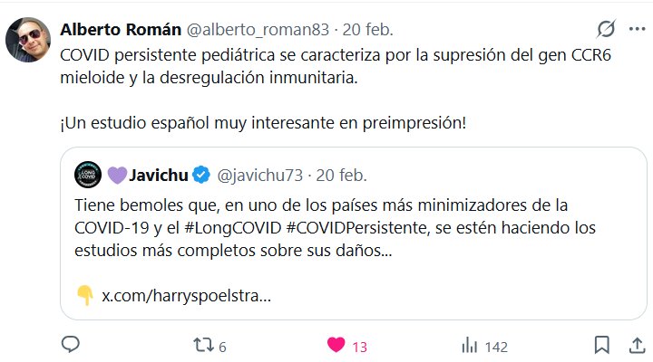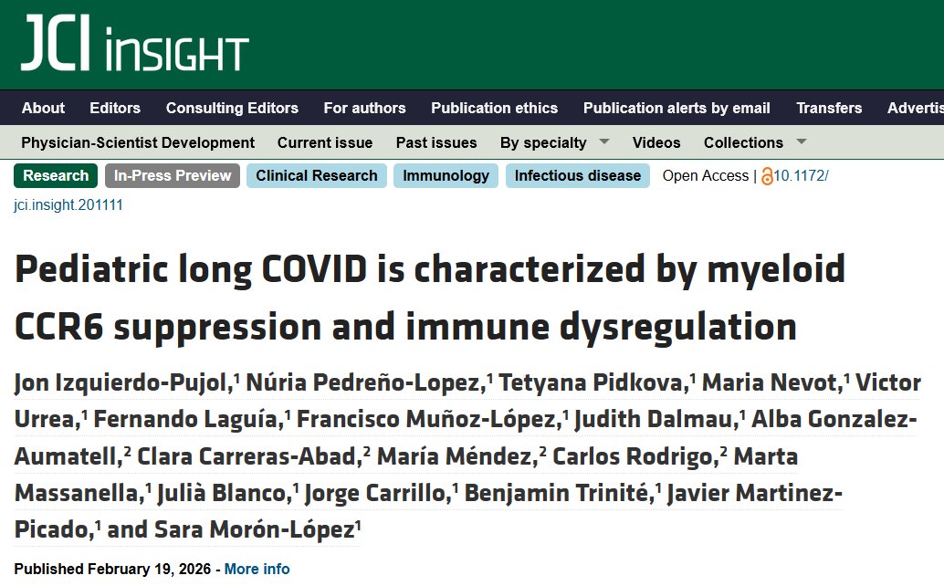 Alberto Román @alberto_roman83 · 20 feb. COVID persistente pediátrica se caracteriza por la supresión del gen CCR6 mieloide y la desregulación inmunitaria. ¡Un estudio español muy interesante en preimpresión!