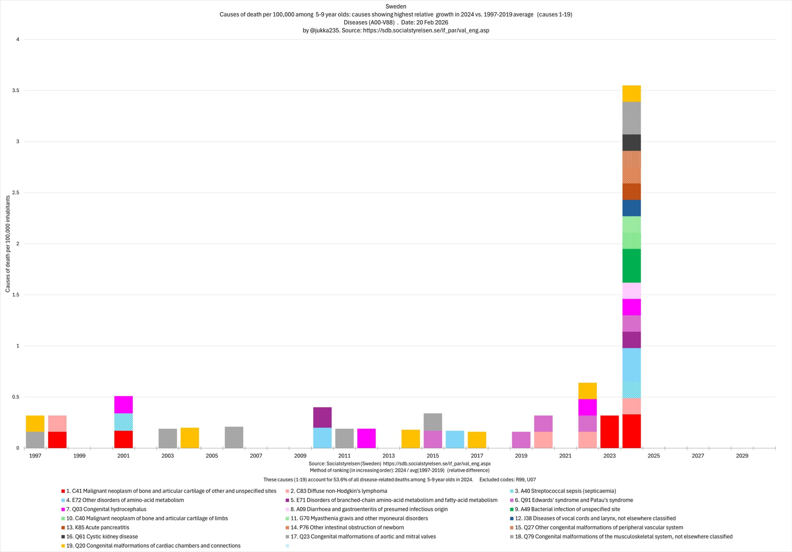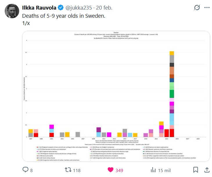 COVID Y POSTCOVID HACEN ESTRAGOS Ilkka Rauvola @jukka235 · 20 feb. 2026 Muertes de niños de 5 a 9 años en Suecia.