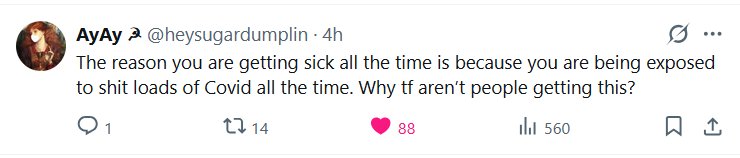 ESCUCHO VOCES AyAy ☭ @heysugardumplin · La razón por la que te enfermas todo el tiempo es porque estás expuesto a un montón de Covid constantemente. ¿Por qué la gente no se da cuenta?