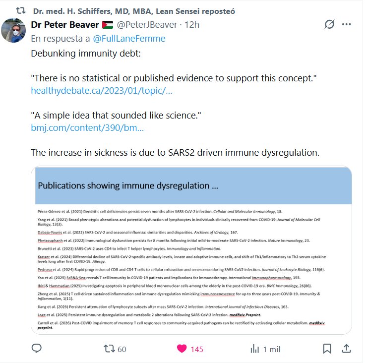 Dr. med. H. Schiffers, MD, MBA, Lean Sensei reposteó Dr Peter Beaver 🇵🇸 @PeterJBeaver El aumento de enfermedades se debe a la desregulación inmunitaria impulsada por el SARS2