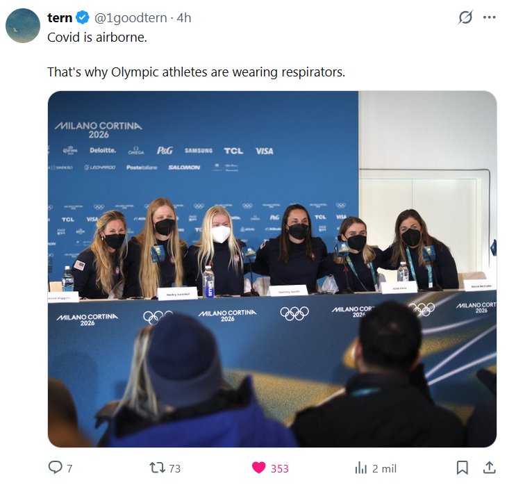 FIN DE PANDEMIA 2026 Tern @1goodtern · El COVID se transmite por el aire. Por eso los atletas olímpicos usan respiradores.